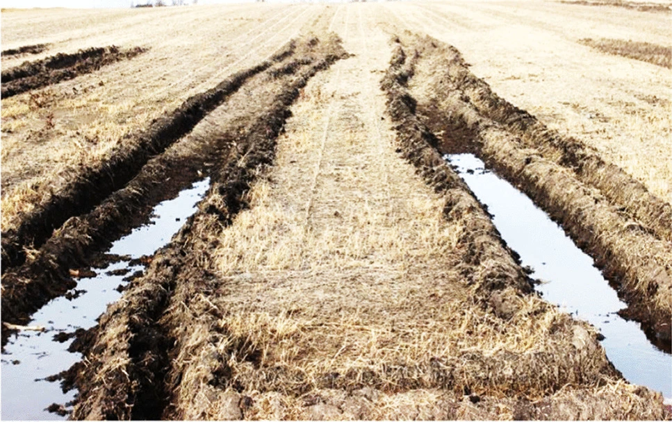 In arid or semi-arid regions, faulty irrigation systems cause salt buildup in the soil. As irrigation water evaporates, it leaves behind salts that accumulate in the upper layers, turning once fertile land into barren terrain.